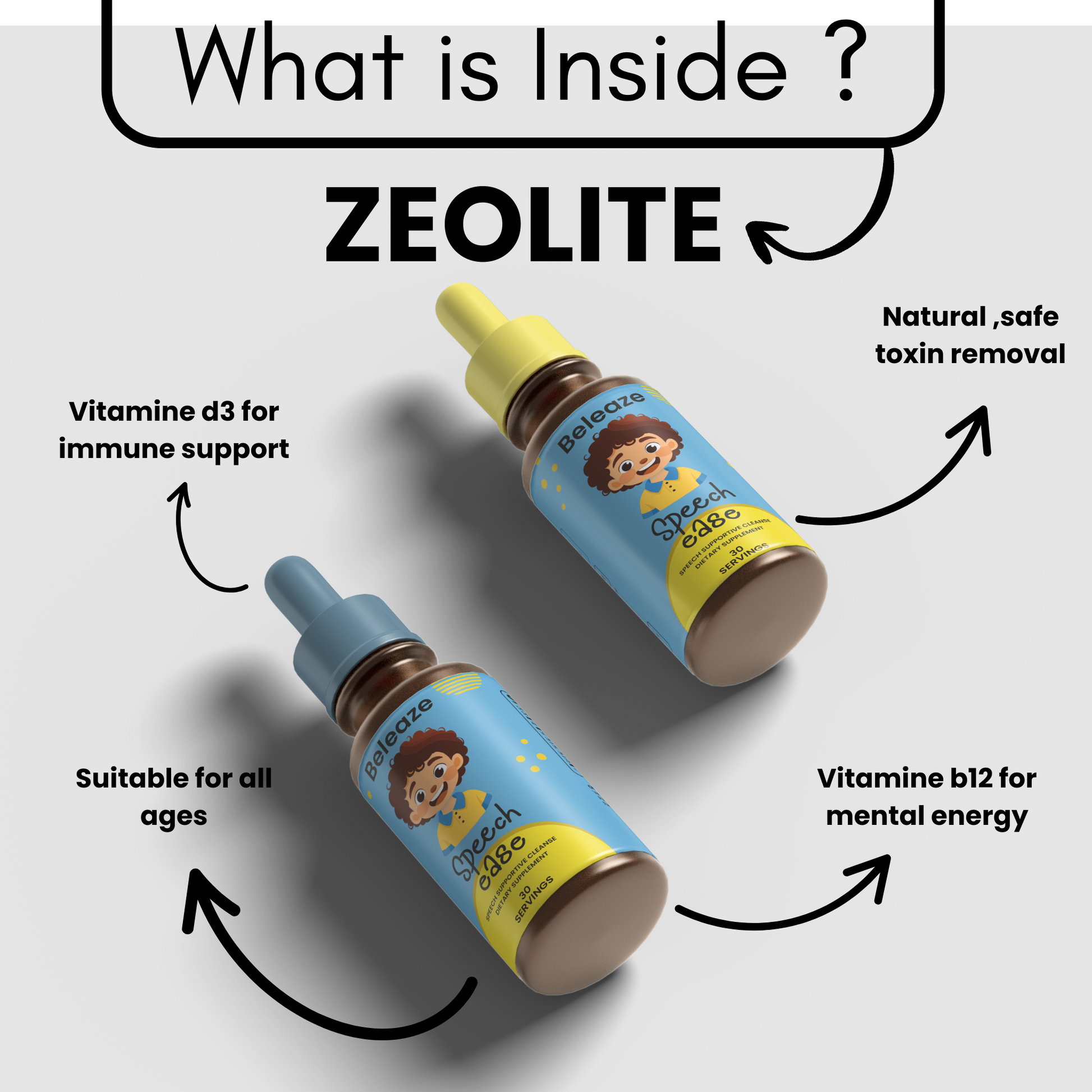 Speech Ease is made with natural minerals and vitamins (including Zeolite, Vitamin D & B12) that help remove heavy metals from the body, support brain function, and boost clear speech and focus. It’s designed to gently support your child’s cognitive and speech development.